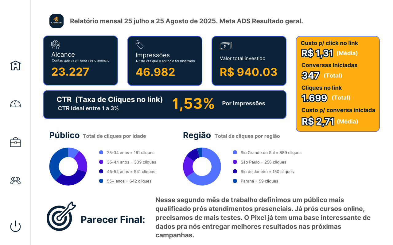 Contratei algumas agências de tráfego pago e não tive muito resultado até encontrar o sistema ADSPRO.IA. Agora crio minhas campanhas em minutos e consigo visualizar os resultados em tempo real. Foi uma virada de chave nas minhas vendas e por um preço muito em conta. Agradeço de coração!